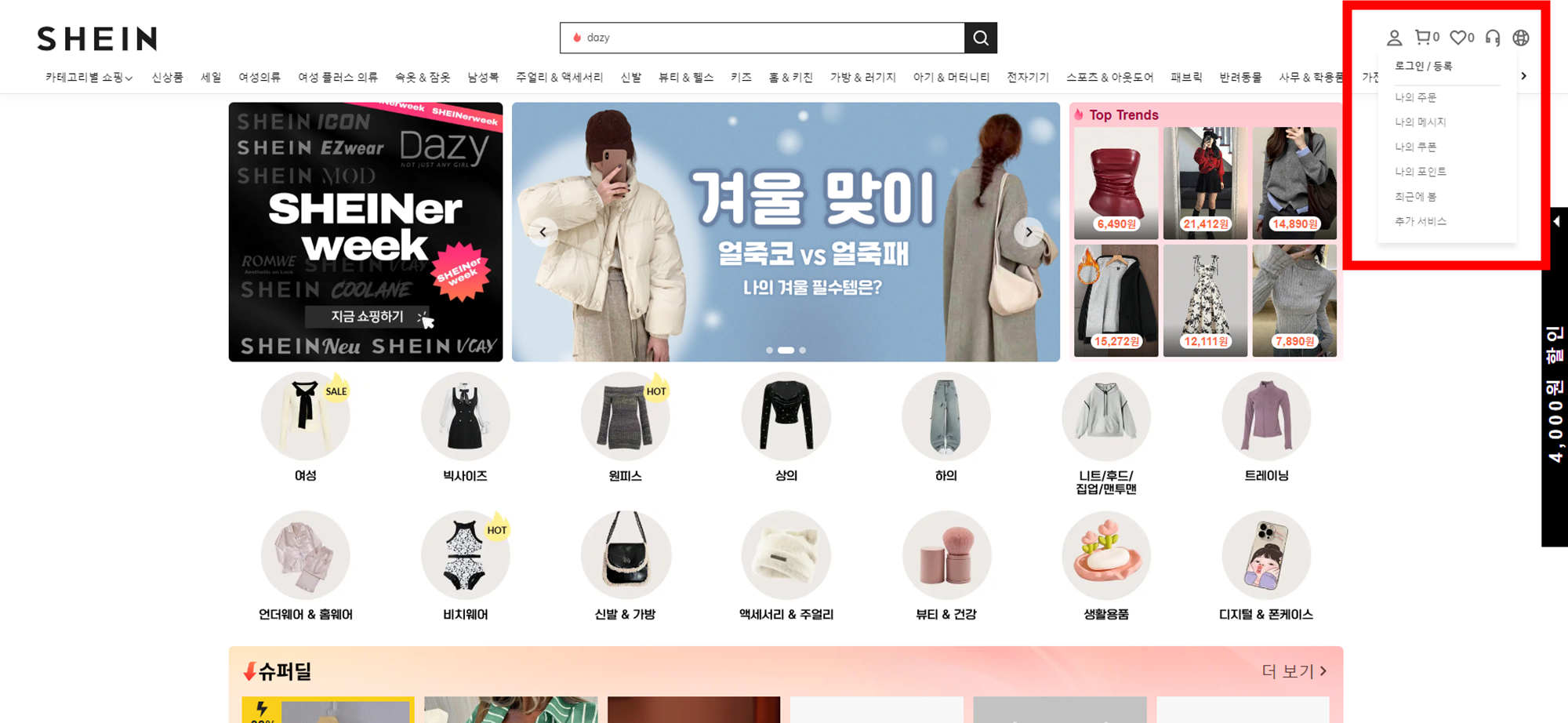 1단계: 쉬인 앱 또는 홈페이지 접속