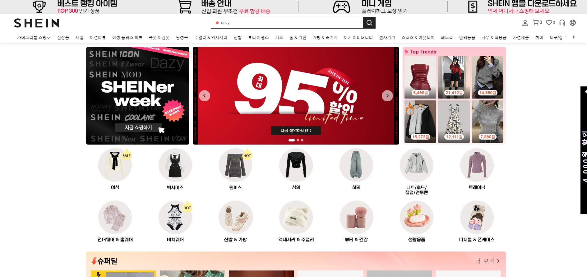 먼저, 쉬인(SHEIN) 앱이나 홈페이지에 접속합니다.