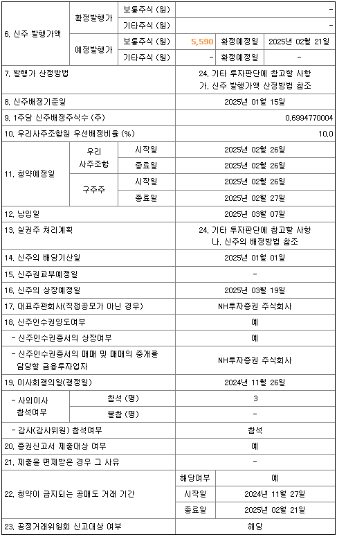 | 신주 상장 예정일 | 2025년 3월 19일 |