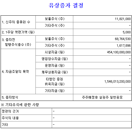 유상증자 개요 및 규모