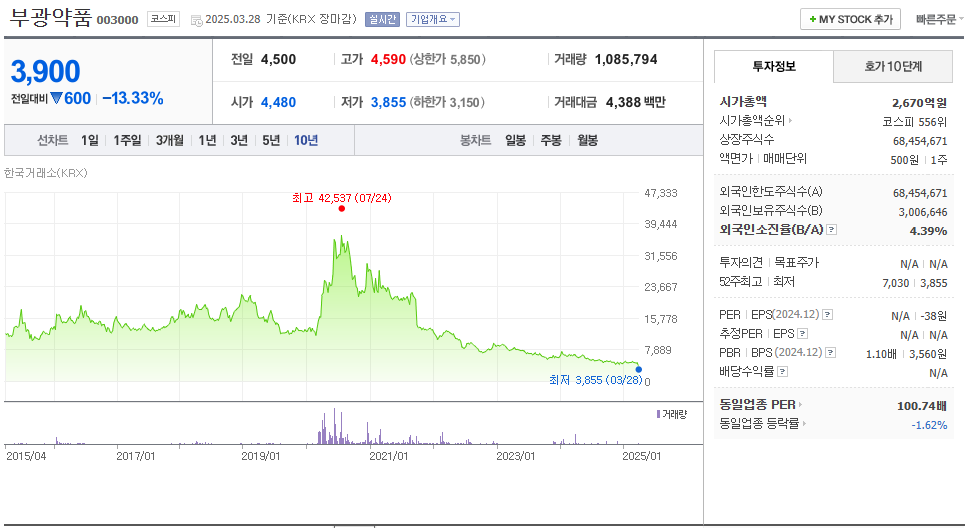 부광약품의 주가는 유상증자 발표 이후 다소 하락세를 보이고 있습니다. 일반적으로 유상증자는 주식 가치를 희석시키기때문에 부정적으로 여겨집니다.