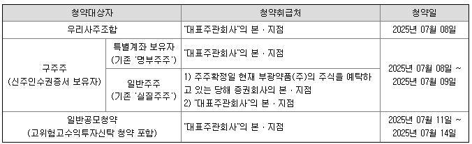 | 청약예정일 (구주주) | 2025년 7월 8~9일 |