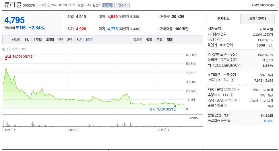 📉 4. 큐라클 최근 주가 흐름과 시장 반응