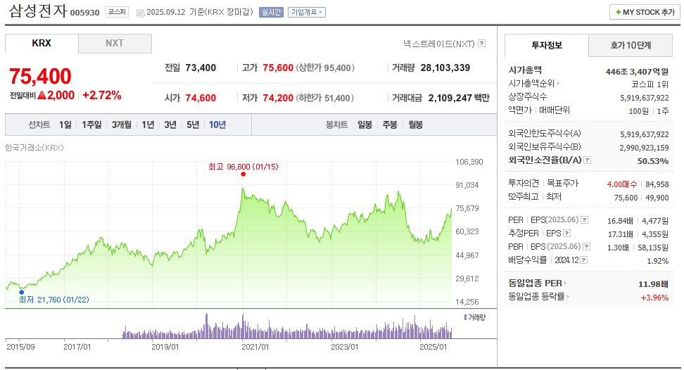 | 단기 (3~6개월 내) | 3분기 실적 컨센서스가 증권가 기대 이상일 것, HBM 및 파운드리 사업에서 가시적 실적 개선, 자사주 매입/소각 등의 주가 부양책 지속, 외국인 수급 및 글로벌 반도체 경기 회복 | 중간 ~ 높음 | 약 80,000원 ~ 85,000원 수준 진입 가능성이 있음 |