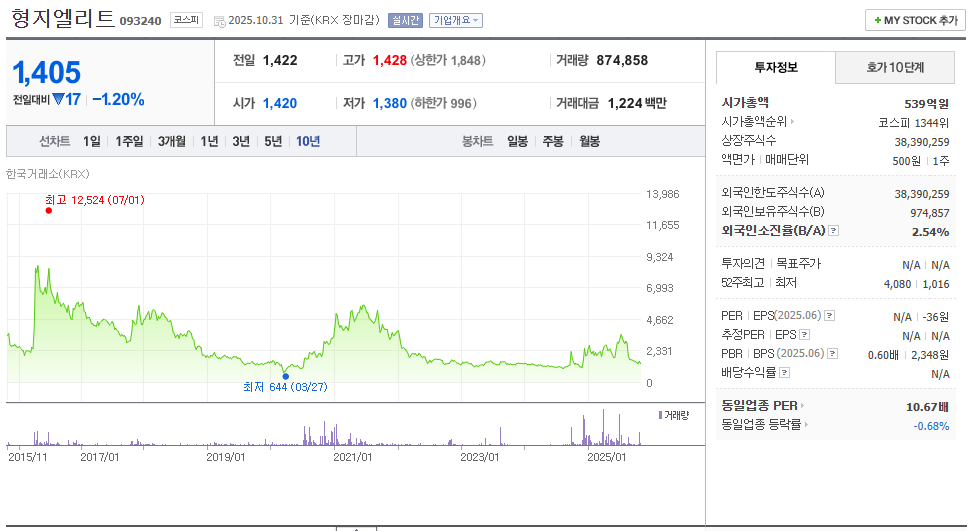 현재 형지엘리트 주가는 1,500원대 중반 수준입니다.